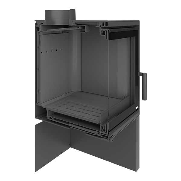 Doraco STO iM 14 - це чавунна піч-камін на підставці дровниці з глянцевою чорною рамкою на склі, яке відкривається в сторону.