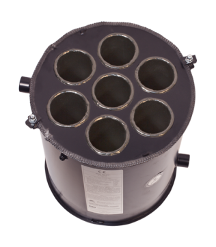 Водопідігрівач виготовлений з листової сталі у формі циліндра, усередині якого через систему димохідних трубок проходять вихлопні гази, які нагрівають воду,що надходить на вхід зворотньої подачі в нижній частині водяної системи. Забір теплої води відбувається через штуцер у верхній частині водяної системи. Вермікулітовий дефлектор направляє потік вихлопних газів рівномірно в димохідні трубки.